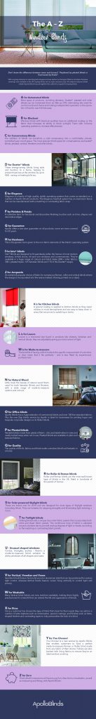Apollo Blinds has put together this useful A-Z guide to window blinds to help navigate the growing number of types of window coverings and fabrics available, as well as explaining any terminology and technological advances in window blinds operating systems.