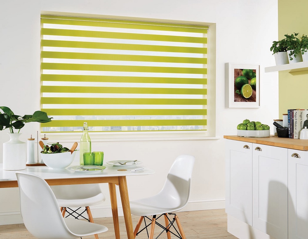 Twilight blinds from Apollo Blinds offer the best of both worlds.  Alternating stripes of sheer and solid fabric protect from prying eyes while still allowing light to flood into a room.  The fabric can be lined up as a full block of colour for a fully closed position and they can be pulled right up out of the way as well – just like normal roller blinds.