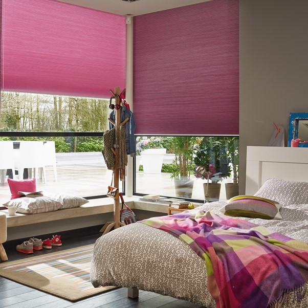 Pink is extremely versatile and can work at scale. We love how these dusky pink Duette blinds make the windows the star of the show, enhancing the neutral colour palette and creating a really on-trend look.