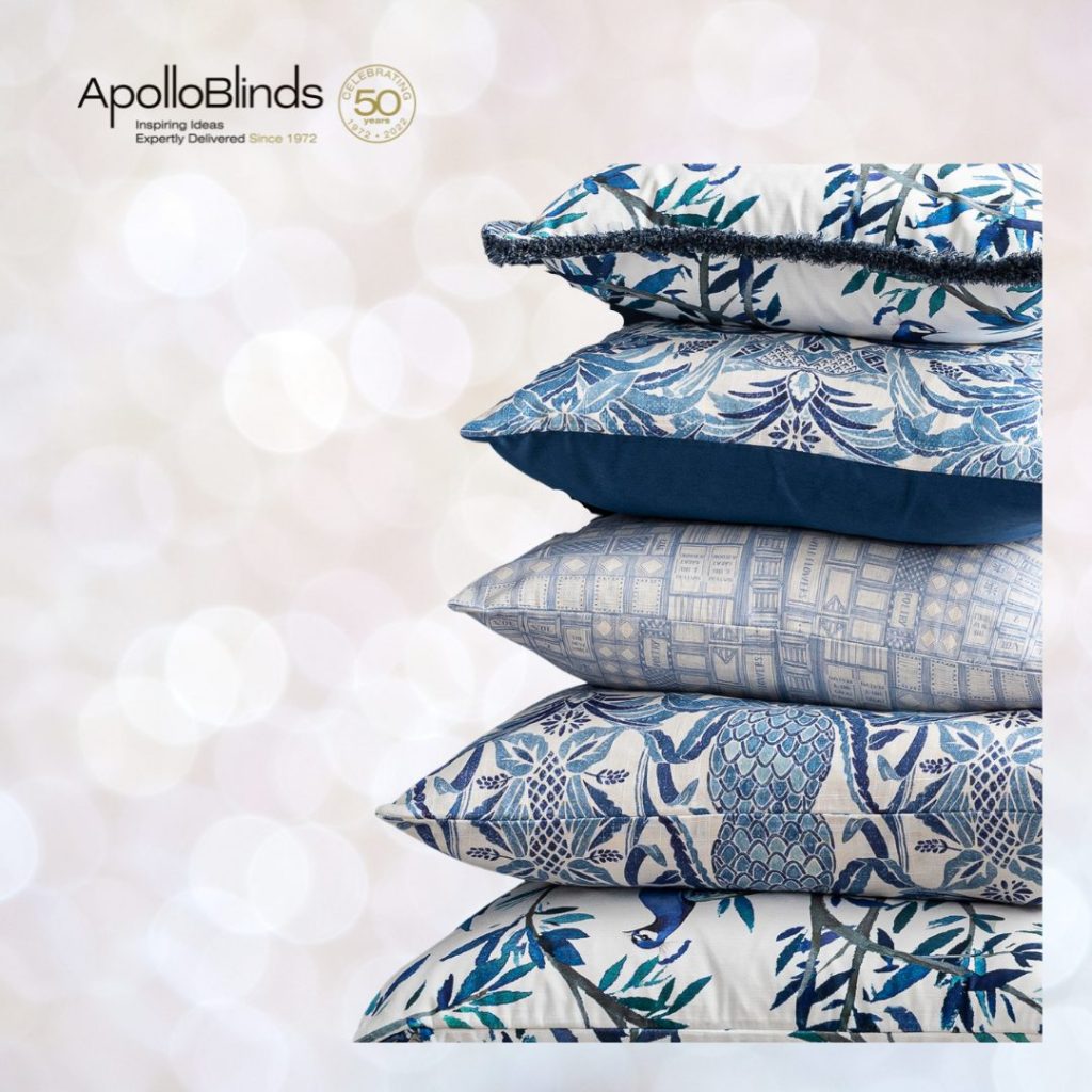 PRIZE 4: Four fabulous Apollo Blinds cushions in a fabric of your choice – why not choose our Adelina Coastal Blue with gold detail fabric.