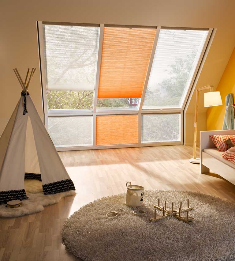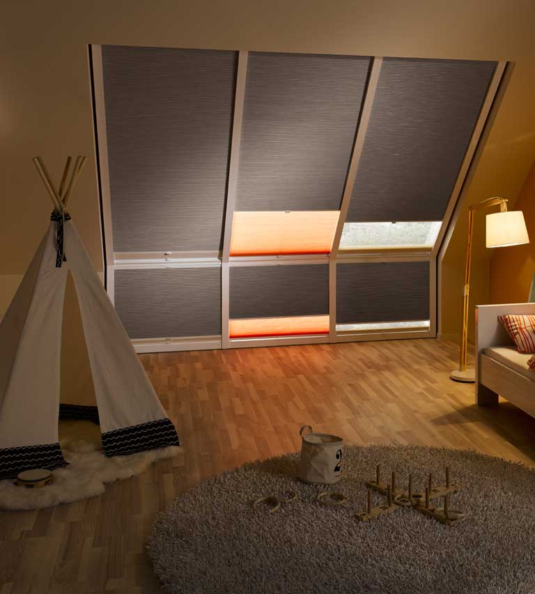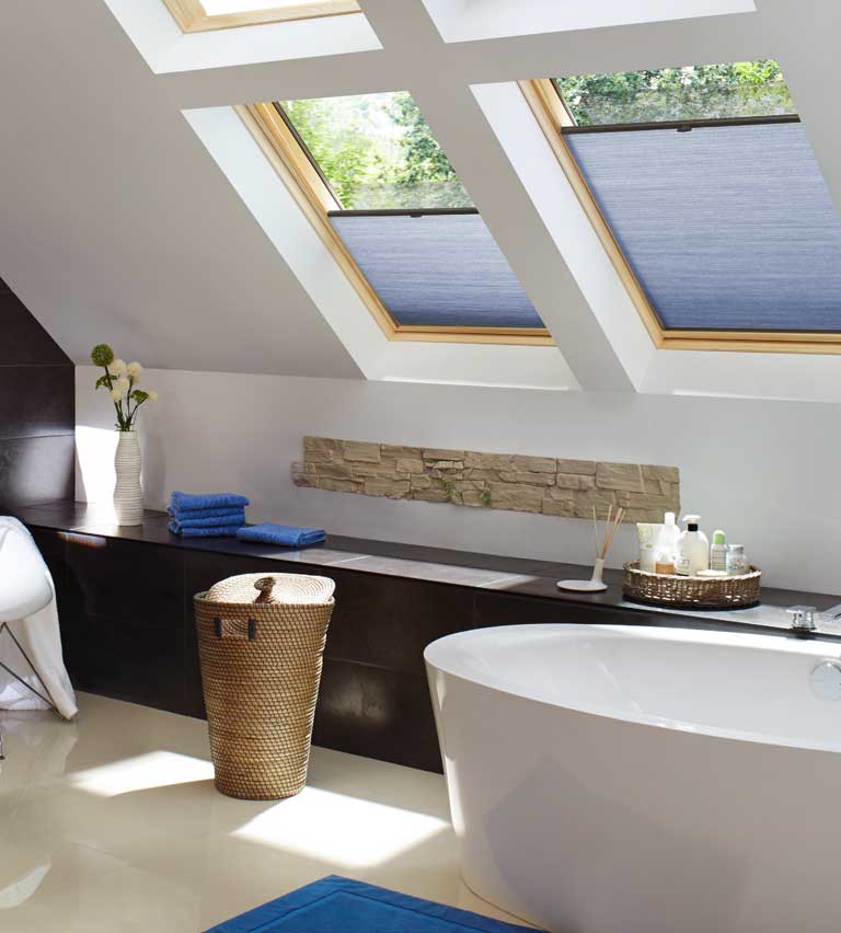 Bloc solar-powered Rooflight blinds can enhance the performance of roof windows, particularly in hard-to-reach areas.